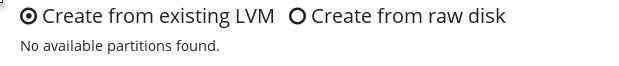 kimchi.validateLogicalForm = function () { - if ($("input[name=devices]:checked").length === 0) { + if ($("input[name=devices]:checked").length === 0 && $("input[name=lvmTmplRadioSelection]:checked").length === 0) { wok.message.error.code('KCHPOOL6006E'); return false; } else { @@ -363,21 +435,28 @@ kimchi.addPool = function(event) { if (kimchi.validateForm()) { var formData = $('#form-pool-add').serializeObject(); delete formData.authname; + delete formData.logicalRadioSelection; + delete formData.lvmTmplRadioSelection; var poolType = $('#poolTypeInputId').val(); formData.type = poolType; if (poolType === 'dir') { formData.path = $('#pathId').val(); } else if (poolType === 'logical') { - var source = {}; - if (!$.isArray(formData.devices)) { - var deviceObj = []; - deviceObj[0] = formData.devices; - source.devices = deviceObj; - } else { - source.devices = formData.devices; + var logicalrRadioSelected = $("input[name='logicalRadioSelection']:checked").val(); + if (logicalrRadioSelected === 'rawDisk') { + var source = {}; + if (!$.isArray(formData.devices)) { + var deviceObj = []; + deviceObj[0] = formData.devices; + source.devices = deviceObj; + } else { + source.devices = formData.devices; + } + delete formData.devices; + formData.source = source; + } else if (logicalrRadioSelected === 'existingLvm') { + formData.from_vg = true; } - delete formData.devices; - formData.source = source; } else if (poolType === 'netfs'){ var source = {}; source.path = $('#nfspathId').val(); diff --git a/ui/pages/storagepool-add.html.tmpl b/ui/pages/storagepool-add.html.tmpl index f7f9b29..b3084fd 100644 --- a/ui/pages/storagepool-add.html.tmpl +++ b/ui/pages/storagepool-add.html.tmpl @@ -82,8 +82,18 @@ </div> </div> <div class="logical-section hidden row"> - <div class="form-group storageType"> - <label>$_("Device path")</label> + <div> + <input type="radio" class="wok-radio" id="existingLvm" name="logicalRadioSelection" value="existingLvm" /> + <label for="existingLvm">$_("Create from existing LVM")</label> + <input type="radio" class="wok-radio" id="rawDisk" name="logicalRadioSelection" value="rawDisk" checked /> + <label for="rawDisk">$_("Create from raw disk")</label> + </div> + <div class="lvm-group hidden"> + <div class="lvm-partition"> + <span class="wok-loading-icon"></span><span>$_("Looking for existing lvms ...")</span> + </div> + </div> + <div class="form-group disk-group storageType"> <div class="host-partition"> <span class="wok-loading-icon"></span><span>$_("Looking for available partitions ...")</span> </div> @@ -156,16 +166,23 @@ <script> kimchi.storagepool_add_main(); </script> + <script id="partitionTmpl" type="html/text"> - <div> - <input type="checkbox" class="wok-checkbox" id="{name}" value="{path}" name="devices"> - <label for="{name}"> - <div> - <span class="device-name">{name}</span> - <span class="device-path">{path}</span> - </div> - </label> - </div> + <tr> + <td><input type="checkbox" class="wok-checkbox" id="{name}" value="{path}" name="devices"><label for="{name}"></label></td> + <td>{name}</td> + <td>{path}</td> + <td>{size}</td> + </tr> + </script> + + <script id="existingLvmTmpl" type="html/text"> + <tr> + <td><input type="radio" class="wok-radio" id="{name}" name="lvmTmplRadioSelection" value="{name}" /><label for="{name}"></label></td> + <td>{name}</td> + <td>{size}</td> + <td>{free}</td> + </tr> </script> </body> </html>